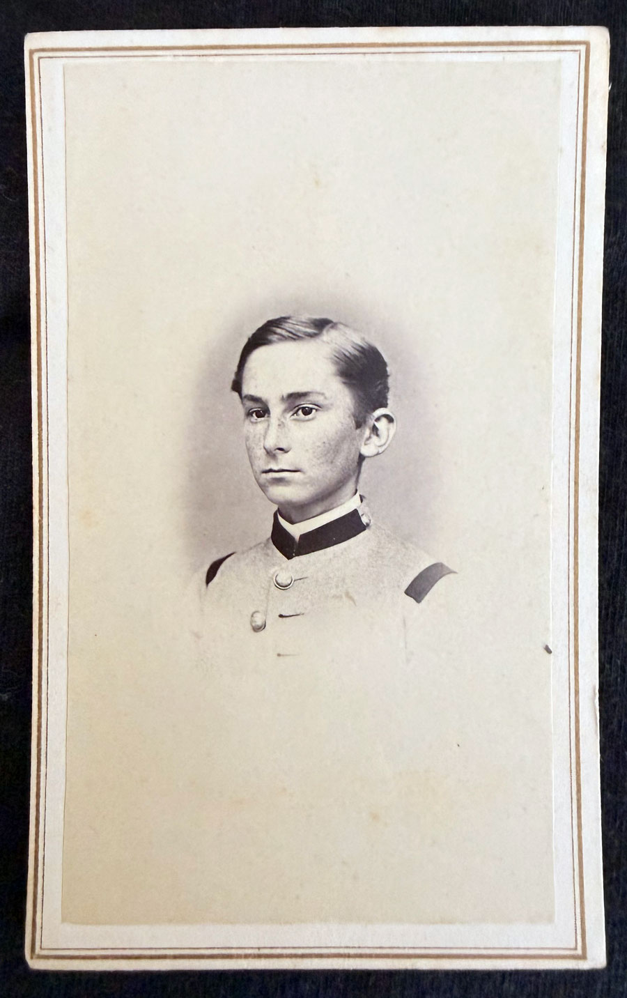 Shortly afterwards, I was hired, and the project was passed on to me. What made identification of these individuals at all possible was a small thing: Carr generally noted just the first initial and last names of each of his school friends, albeit with the occasional misspelling. After a day or two of research, I was able to find what was essentially a yearbook for the school, the Catalogue of the Officers and Cadets of Highland Military School from 1856 to 1870, which included a description of the school’s activities, as well as the aforementioned list of students who had attended the school. The students who were listed here were mostly from 1865 to 1867, with four students from 1869, just before the catalogue’s cutoff date. From this, I built a record of each student and their assorted records that I could track down on the Ancestry.com service, which was not an easy feat for everyone involved. The Catalogue is not an extensive document and only reports the full names and cities of origin for each student. Luckily, with this information, I could attempt to identify everyone using Ancestry.