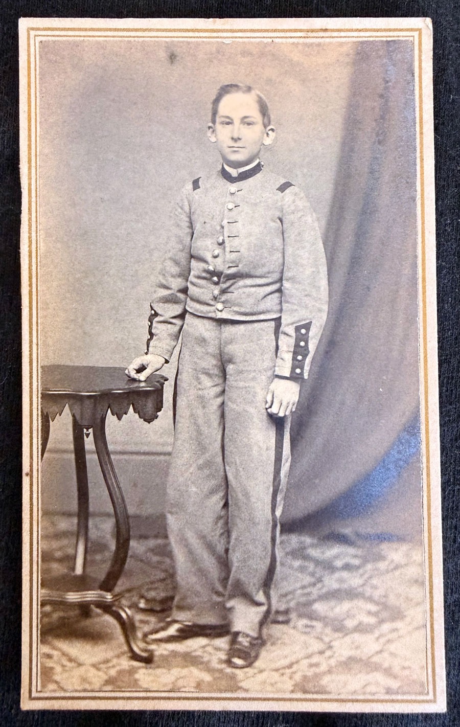 The Carr photo album has been in the Fall River Historical Society’s collection since 1985. The photos within depict several individuals who were close to Joseph Durfee Carr. The family members and close friends in the album had long been identified, but there was a large group that remained unknown, those who had attended Highland Academy, a military academy and college preparatory school in Worcester, Massachusetts. Joseph attended this school in the 1860s and clearly made enough close friends that his photo album was half full of them.