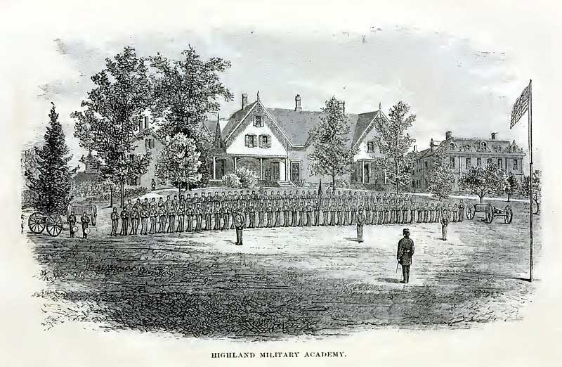 The Highland Military Academy was founded in Worcester in 1856 with the aim to provide a new class of officers for the burgeoning United States military, as well as a class of college students that would be well prepared to eventually run the nation, an educated and disciplined élite of moral and intelligent men. New England, and especially Massachusetts, was rife with this sort of preparatory school during the 1800s, such as St. Mark’s School in Southborough, the Groton School in Groton, and Middlesex School in Middlesex.
