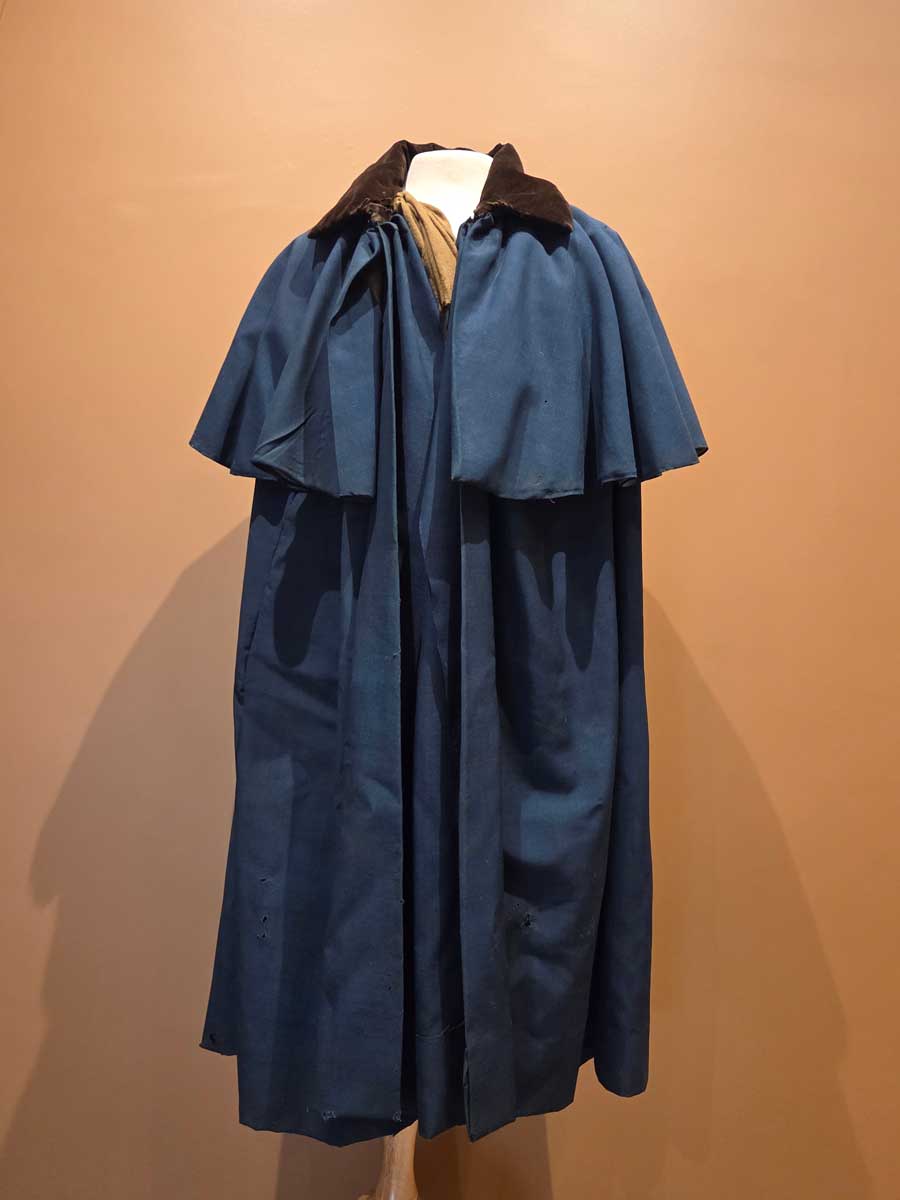 In 1956, Louise Smith Borden Waring donated an item to the Fall River Historical Society, so that it might be preserved and shown to future generations. She was a descendant of Josiah Smith, a veteran of the Revolutionary War, and donated a piece of clothing that had belonged to him. The item itself is on the face of it rather unremarkable, a blue greatcloak with some shreds of green wool inside and a brown velvet collar. For several decades, it was on display, in direct sunlight and uncovered, simply resting on a dress stand. Little was known about the cloak, or indeed the man by whom it was owned. Over the past few months, I’ve been working to turn this garment without a history into a greatcloak that can tell its own story.