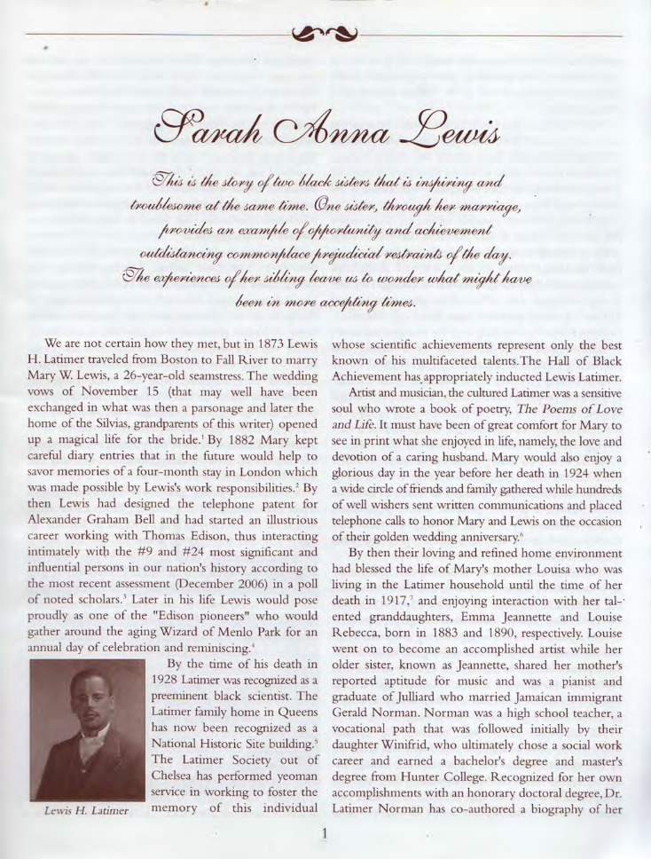 SARAH ANNA LEWIS by Philip T. Silvia, Jr., PhD